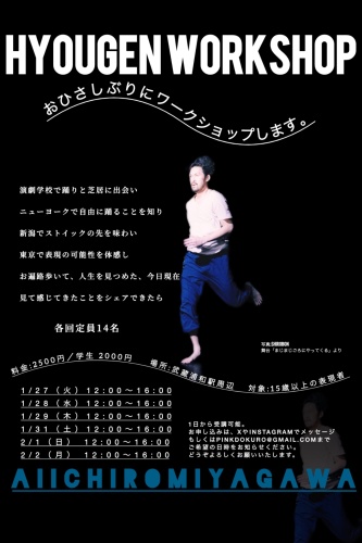 役者のための身体ワークショップ 一流の表現者宮河愛一郎による「役者の為の身体ワークショップ」宮河氏の『Move on』は9カ国、18のダンス映画祭で上映され、3つのグランプリを受賞しました。さて、これはダンスのワークショップではありませ...