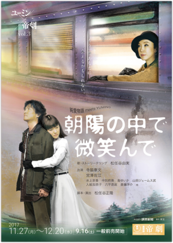 ユーミン×帝劇vol.3 純愛物語 meets YUMING「朝陽の中で微笑んで」 2017/11/27〜12/20 帝国劇場(東京)製作:東宝脚本・演出:松任谷正隆美術:松井るみ出演:松任谷由実/寺脇康文/宮澤佐江/水上京香/中別府葵/島ゆいか/山田ジェームス武/入絵加奈子/六平直政/斎藤洋介/折井理子/...